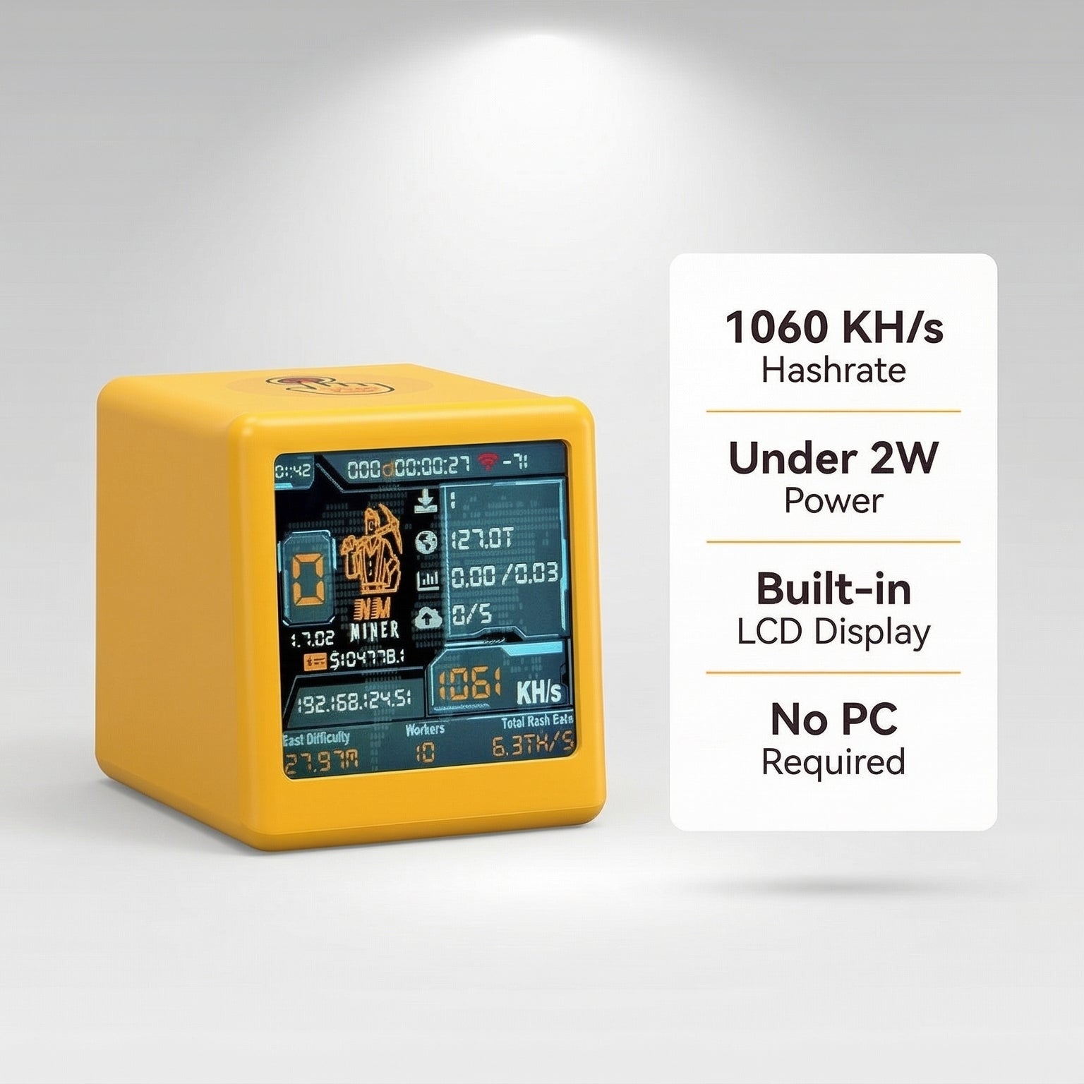 Unlike basic miners that need a connected computer, the Pulse has everything built in. It even doubles as a desktop clock when you’re not watching the stats.